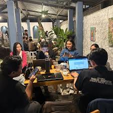 Kelompok teman yang ingin membuat konten media sosial bersama. Mereka berkumpul dan bertukar ide mengenai konsep video, lokasi pengambilan gambar, serta pembagian tugas seperti siapa yang menjadi kameramen, editor, atau pemeran dalam video tersebut. Diskusi dilakukan secara santai, tetapi tetap bertujuan menyepakati rencana kegiatan.